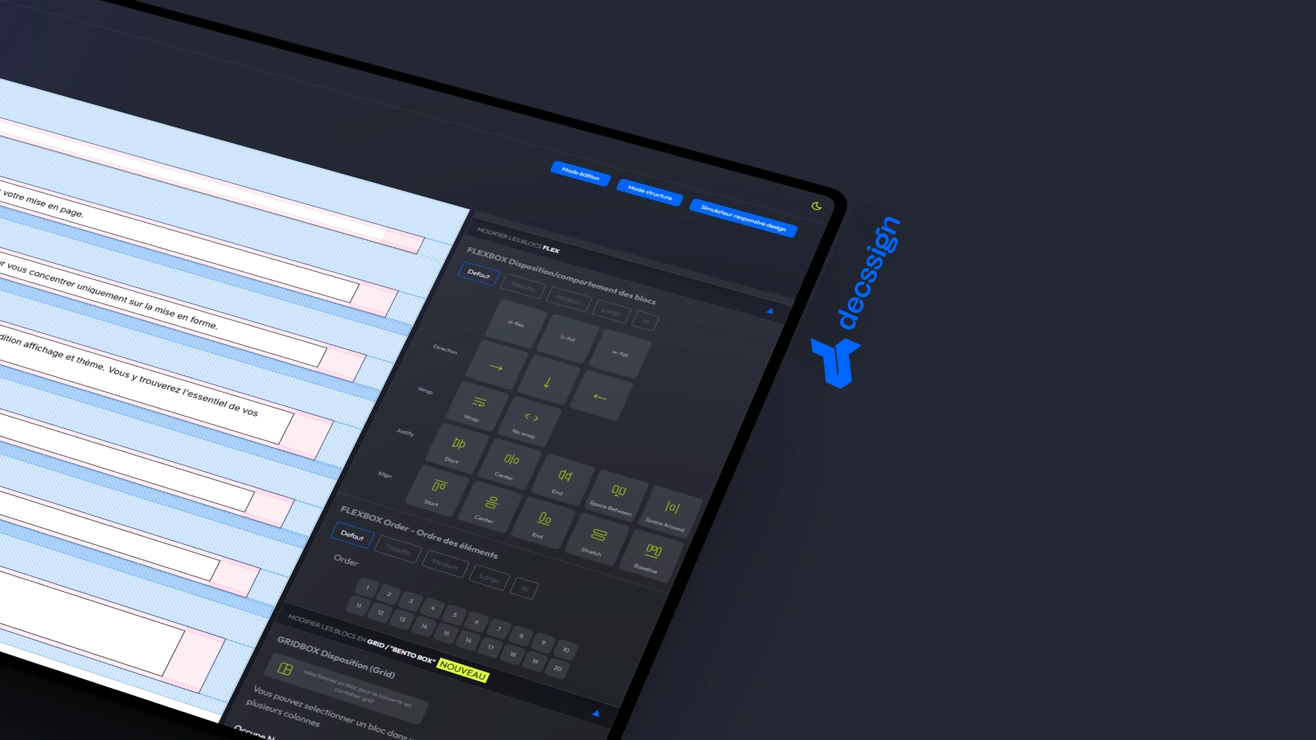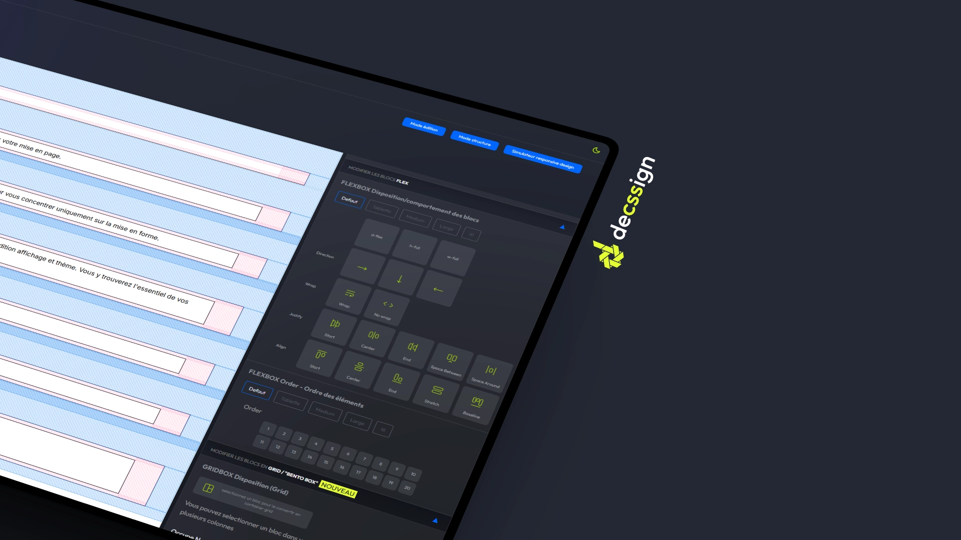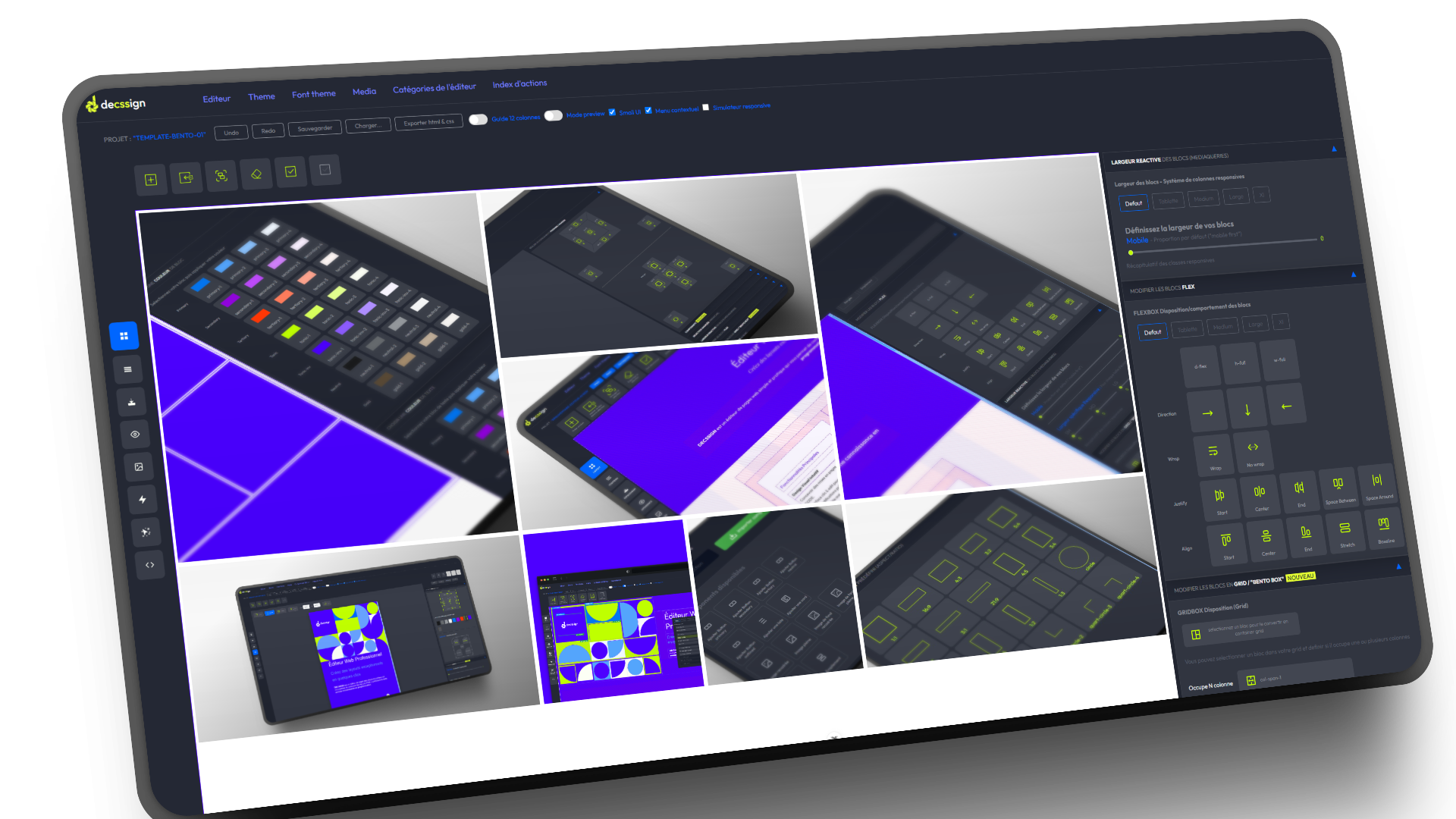 - ■ Système de Layout Avancé Grille flexible 12 colonnes extensible Contrôles Flexbox complets, grid layout et design "bento box", Breakpoints responsive configurables et previsualisables.