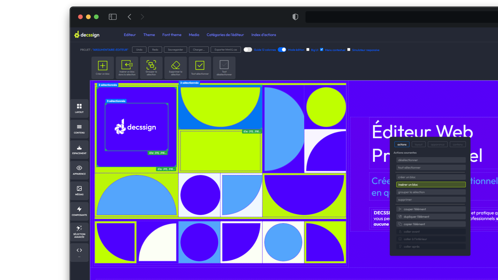 DECSSIGN est un éditeur web professionnel no-code qui révolutionne la création de pages web. Conçu pour les designers, développeurs et entreprises, il permet de concevoir des layouts HTML exceptionnels sans écrire une seule ligne de code. Grâce à son système de grille flexible basé sur CSS Grid et Flexbox, son moteur de design complet avec palette chromatique structurée, et son architecture responsive native, DECSSIGN génère du code HTML/CSS propre, sémantique et optimisé. L'application offre une liberté créative totale tout en maintenant des standards web professionnels, avec des exports parfaitement éditables et une collaboration d'équipe fluide. Que vous soyez débutant ou développeur confirmé, DECSSIGN s'adapte à votre workflow pour transformer vos idées en réalité web en quelques minutes.